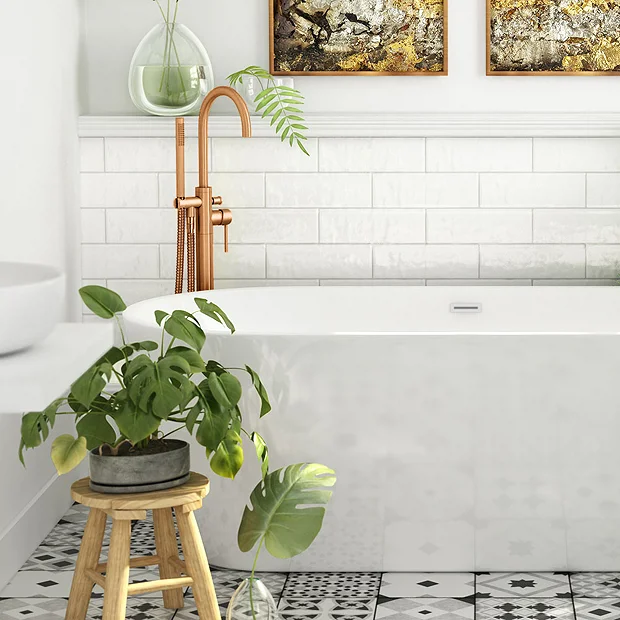 The Luxury Arezzo Brushed Bronze Freestanding Bath Tap with Shower Mixer blends practicality with sleek contemporary style. Its clean lines and streamlined shape are a sophisticated complement to your freestanding bathtub, while the warm brushed bronze finish creates an eye-catching contrast against white fixtures and tiles. This design features a simple lever handle tap so you can quickly set water temperature, along with a slim handheld shower head that’s easy to move thanks to its flexible 1500mm hose. It’s contemporary round appearance integrates seamlessly into any modern bathroom.