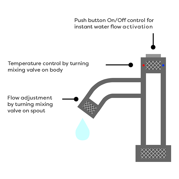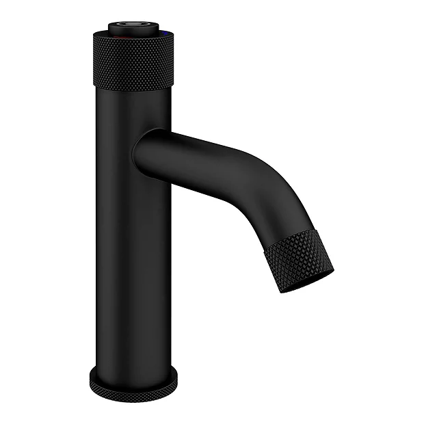 The stylish Arezzo industrial-style matt black 1 touch smart control mono basin mixer tap is perfect for adding a striking finishing touch to your contemporary bathroom. Features easy to use instant 1 touch start/stop water flow activation, ideal for when your hands are full or dirty. Temperature and flow is easily adjusted by simply turning the mixing valves located on the tap body. Crafted to the highest standards, this stunning deck mounted tap features a stripped-down aesthetic with a round knurled textured tap head controls, perfect for creating an eye catching industrial look in your bathroom. Plated in a matt black finish which is highly resistant to corrosion.