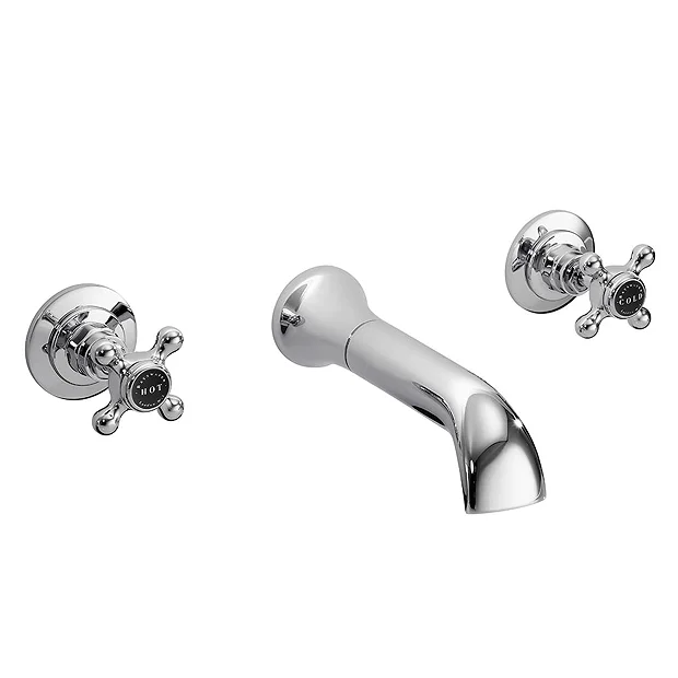 Beautifully crafted and inspired by Victorian and Edwardian designs, the Bayswater Black Crosshead 3 Tap Hole Wall Mounted Bath Filler is the perfect upgrade for the traditional bathroom. It’s elegant crosshead handles and classic Black indices adds to the timeless look, while the ceramic disc technology ensures long life and smooth operation. Made from high grade brass with a durable chrome finish.