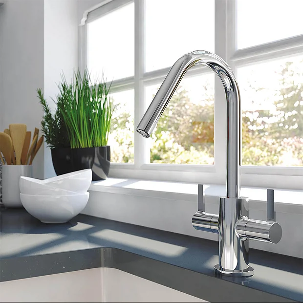 This cool and contemporary design Cashew monobloc sink mixer with twin lever design is a stylish addition to any modern kitchen. The stunning tap is from the Bristan Easyfit range which has been designed with the installer in mind to ensure installation and future maintenance is made quick and easy. It features a unique patented Easyfit technology making it easier to fit than a standard tap.