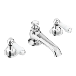 Bring the elegance and luxury of Victorian design to your bathroom with the Chatsworth 1928 Traditional Crosshead Bath Filler Tap. With two cross head handles for hot and cold water, this deck-mounted design is made for bath installations with two tap holes. The classic crosshead bath mixer tap is made from sturdy brass and features a timeless chrome plate finish with ceramic white indices, for that heritage touch.