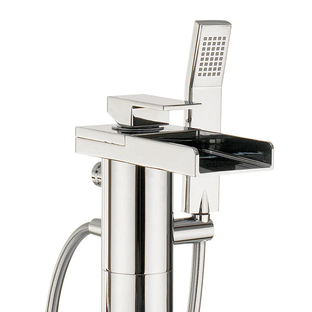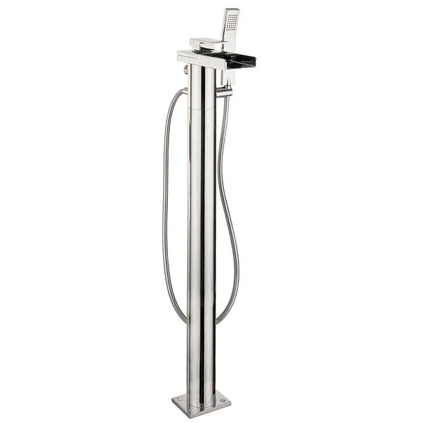 Featuring the Water Square tap range from Crosswater. This Floor Mounted Freestanding Bath Shower Mixer comes in a chrome plated finish and has a rounded body and a rectangular open spout that produces a stunning waterfall effect. The single lever design allows for ease of operation and control of the flow of both hot and cold water.