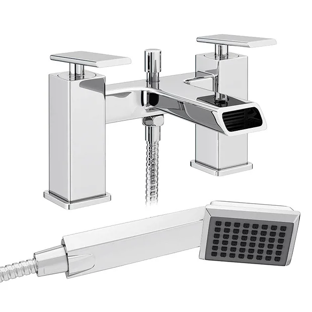 The modern Flare bath shower mixer tap is suitable for any modern bathroom, features joystick control levers which allows you to easily adjust both the pressure and temperature of the water. Create a stunning designer look in your bathroom with the Flare bath tap. Includes a shower kit consisting of a square paddle hand held shower head, wall bracket and flexible hose.
