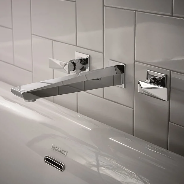 With beautiful sculpted lines, the Hemsby 3 Hole Wall Mounted Bath Filler features sleek lever operation, a smooth chrome finish and brass construction. This stylish range is set to become a future classic.