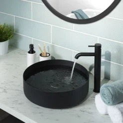 The Vos Matt Black range from JTP combines modern styling with functionality. This tall single lever basin mixer tap will catch the eye with its smooth contours and matt black finish. Suitable for low pressure water systems.