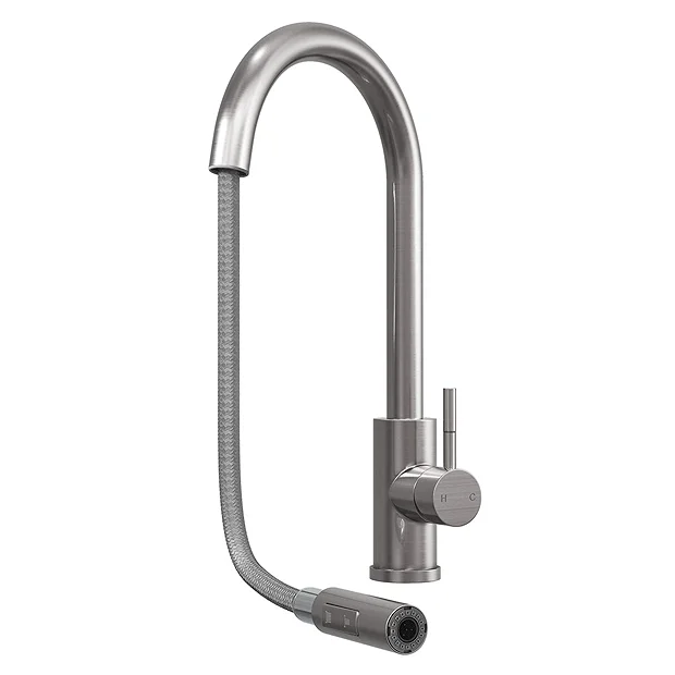 Venice Brushed Steel Kitchen Sink Mixer with Pull-Out Hose and Spray Head